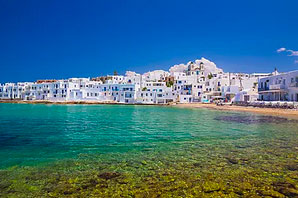 Réputée pour son marbre blanc, l’île de Paros se situe dans les Cyclades. Sur les quais de sa ville principale, Parikia, vous découvrirez des églises byzantines et des demeures néoclassiques. Pour profiter du rivage turquoise, vous pourrez faire halte à Naoussa. Ce petit port de pêche borde une très belle anse.